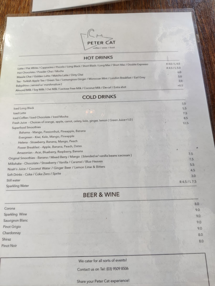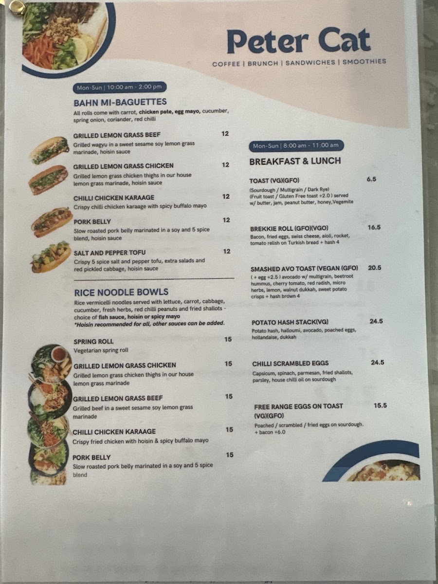 At Peter Cat, the menu is a delightful mix that promises to satisfy any palate. Coffee lovers can revel in the rich selection of hot beverages, such as a perfectly brewed flat white or a long black, all at an affordable price of A$5. If you’re in the mood for something sweet, don’t miss the affogato—a luscious scoop of vanilla ice cream topped with a shot of espresso for just A$7.50.